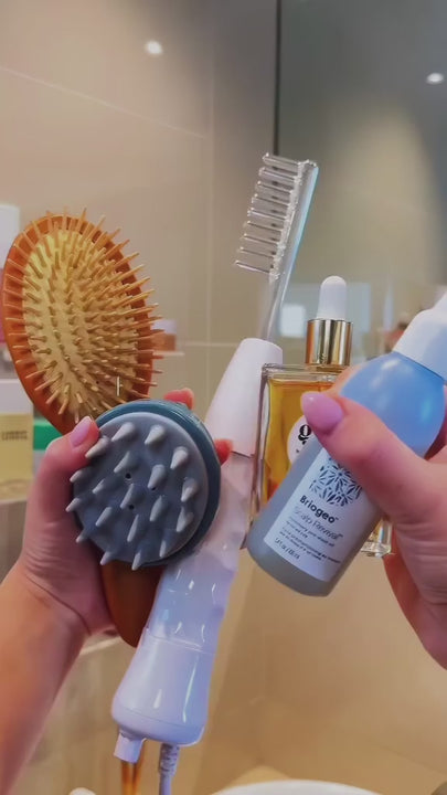 • Apply Essential Oils: The scalp massager has a built-in essence liquid tank. After you pour essential oil into the tank, it can help you evenly and easily apply it on your head and massage your scalp at the same time.